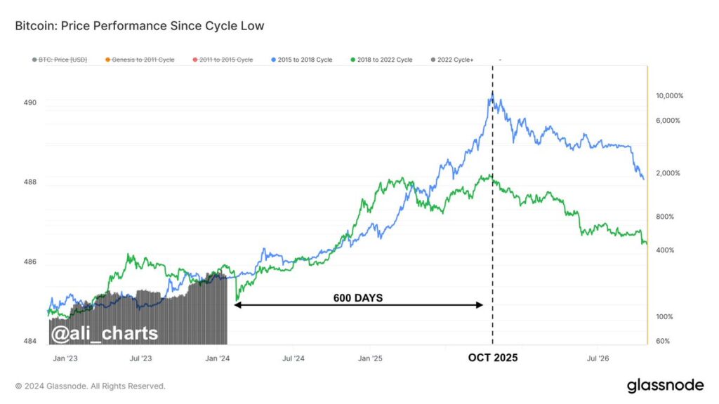 Martinez tells his 42,300 followers on the social media platform X that if Bitcoin follows prior bullish cycles, the crypto king might stay in an uptrend for greater than a 12 months and a half.