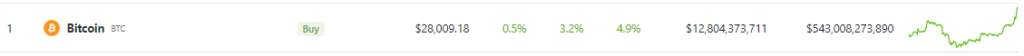 BTC responded positively to the information of the improve. On the time of writing, BTC is exchanging fingers at $28,009, up 3.2% within the final 24 hours, in accordance with knowledge from cryptocurrency market tracker Coingecko. The crypto has been on the uptrend by practically 5% within the final seven days.