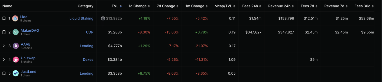 On account of its publicity to the exploit, the TVL on the protocol has plummeted within the final month. In response to DefiLlama, Aave’s TVL has fallen by 21.18% within the final 30 days, relinquishing its place because the second largest by way of TVL to competitor MakerDAO [MKR].