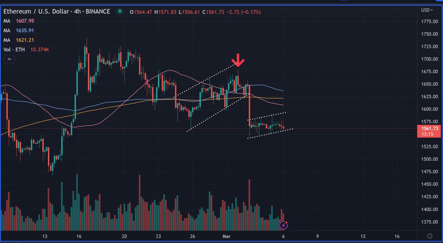 At time of writing, Ethereum is buying and selling for $1,568.