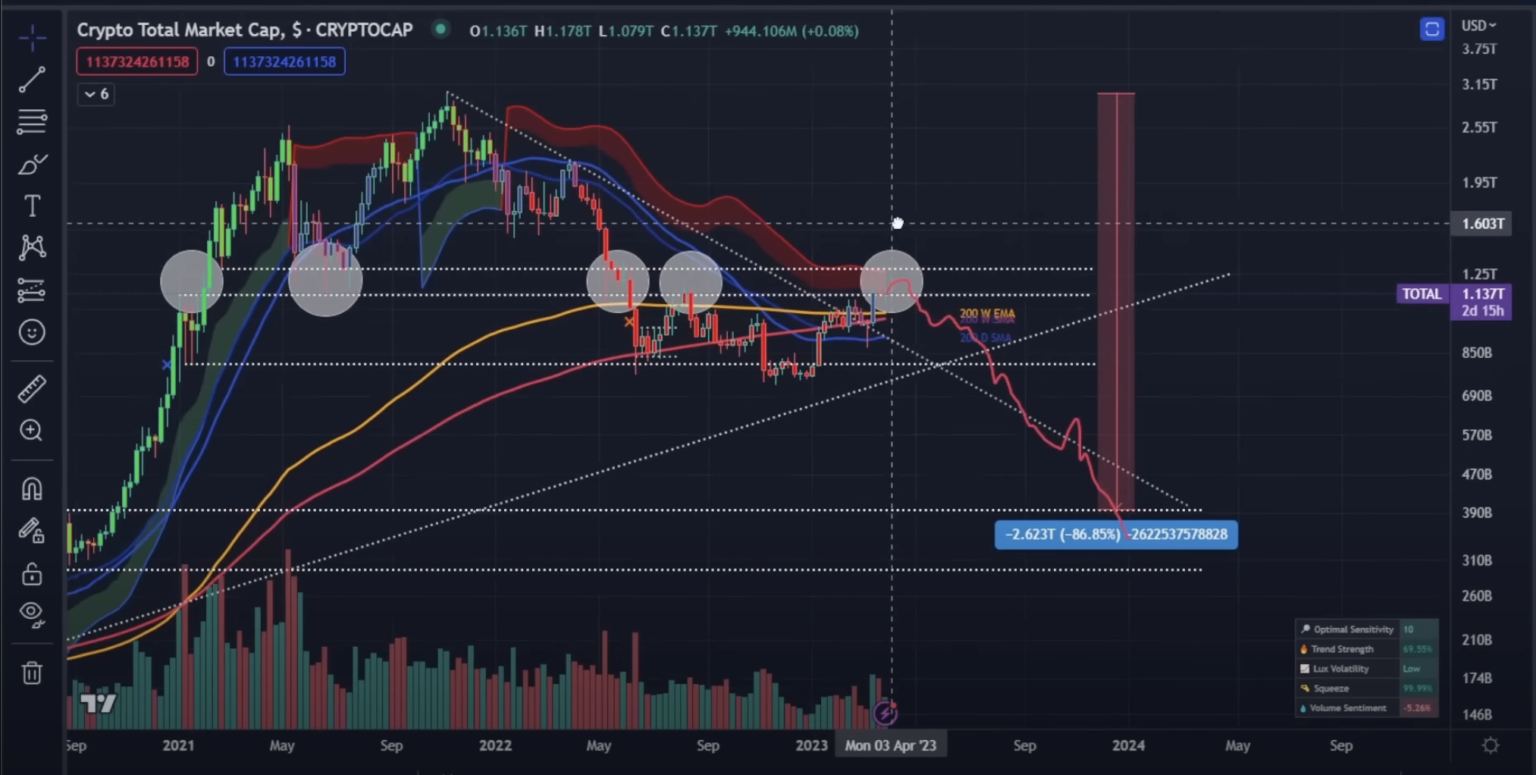In accordance with Merten, the crypto market is about to face an important take a look at, and if it fails, the overall market cap of the trade might endure an epic setback.