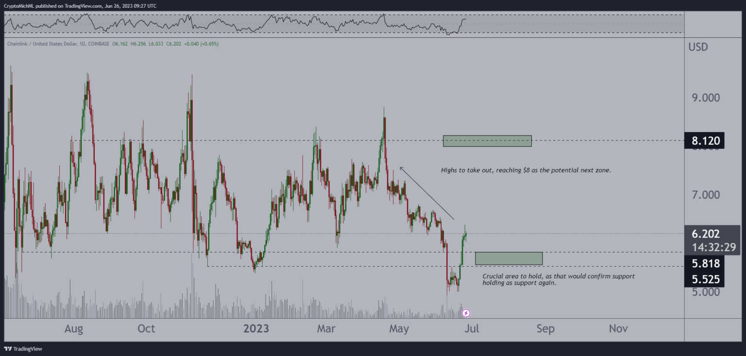 In line with Van de Poppe, he’s on the lookout for LINK to rally to $8 so long as it stays above its instant help.