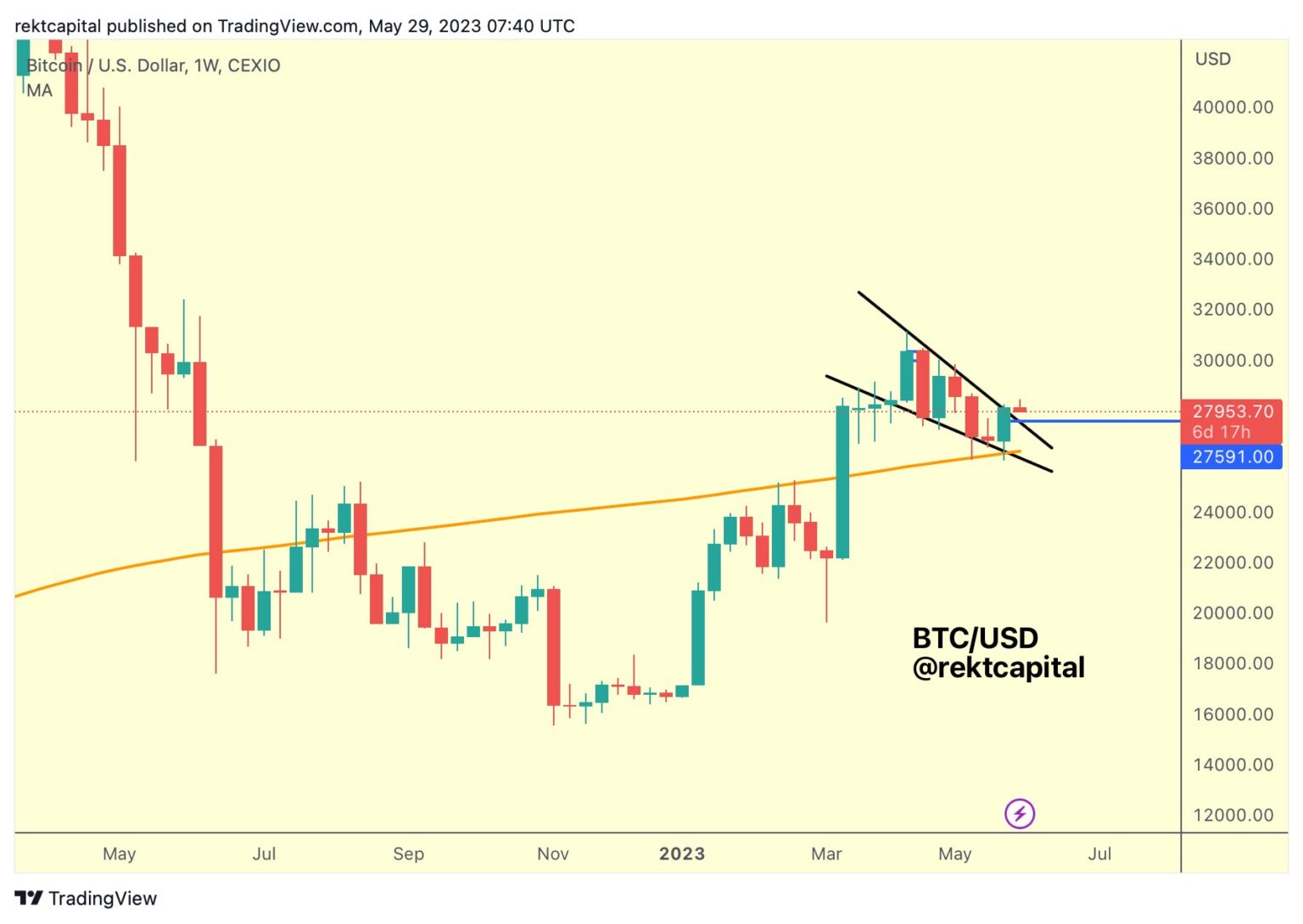 BTC misplaced ~$27,600 as assist two weeks in the past and now has positioned itself for a retest/reclaim of this identical degree