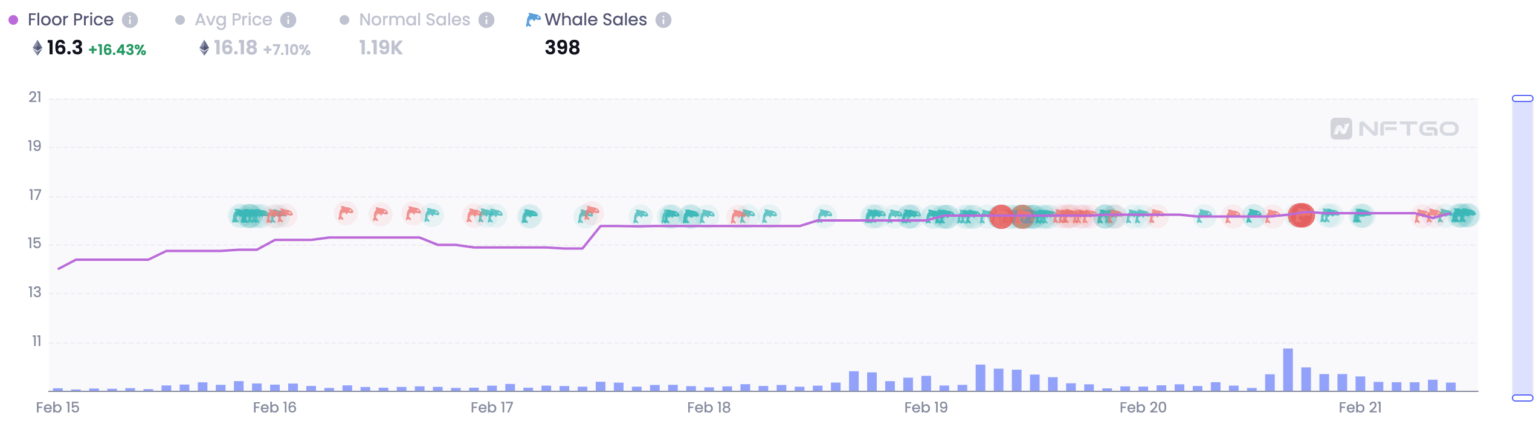 Over the previous couple of days, MAYC’s demand reached an all-time high. In keeping with NFTGO, the variety of gross sales of MAYC elevated by 81.81% during the last week. The general flooring value for the NFT assortment additionally surged by 16.43%.