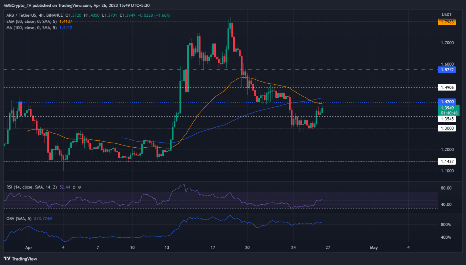 Arbitrum [ARB] fought fiercely to safe the $1.300 assist. Since 23 April, sellers threatened to crack the assist, however bulls remained steadfast.