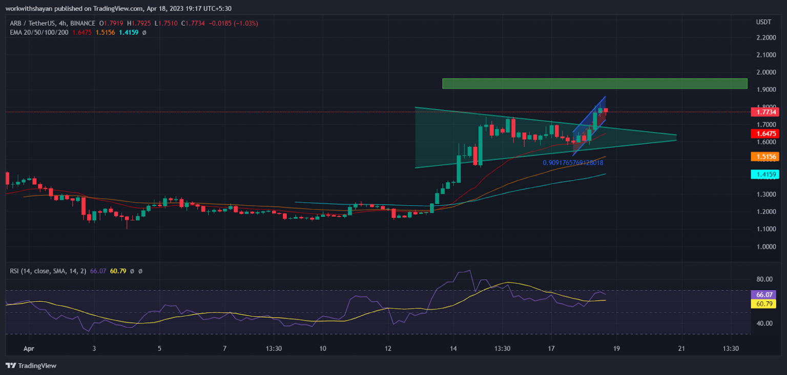 As of writing, the ARB token trades at $1.77, gaining almost 10% within the final 24 hours. If the ARB token continues its present bullish momentum and maintains its worth above $1.9, there’s a potential for a skyrocketing worth development to $2.5.