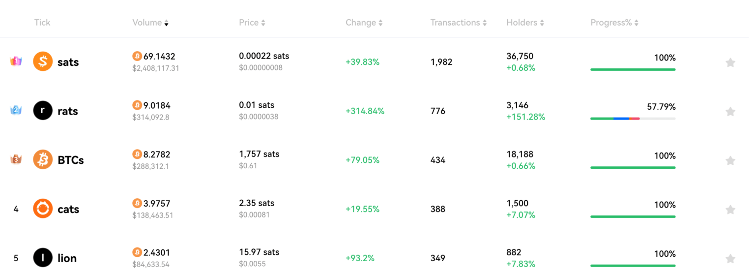 Within the final week, sats assortment went up by 124%, the “BTCs” assortment surged by 30%, and “honk” grew by 300%, and “ordi” by 13%. Amongst them, “sats” held the highest spot with a market cap of about $166 million, surpassing “ordi” with roughly $130 million.