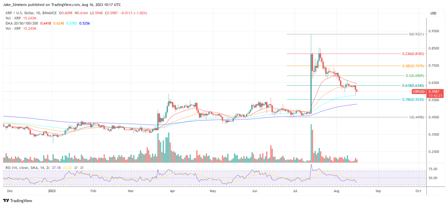 At press time, XRP was buying and selling at $0.59, down greater than 35% from its yearly excessive at $0.93 following the abstract judgment within the Ripple towards the US Securities And Change Fee (SEC) case. Earlier than the decision was introduced, XRP was buying and selling at $0.47, which means that the XRP worth has already misplaced most of its positive aspects following the euphoria over Ripple’s victory.