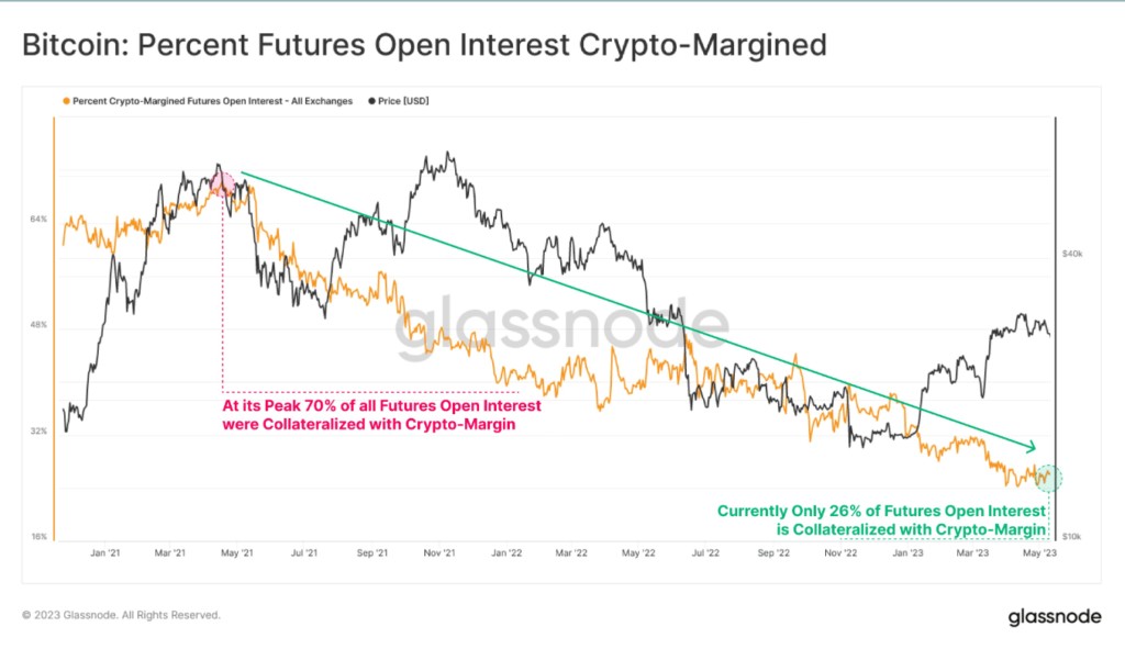 The discount in Crypto-Margined collateral considerably improved the general well being of the spinoff collateral construction per Glassnode.