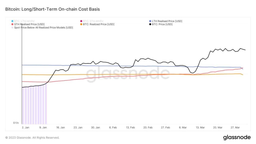 Per knowledge from on-chain analytics platform Glassnode, the short-term holder realized worth was $21,742, whereas the long-term holder’s realized worth for the king coin was $21,334.