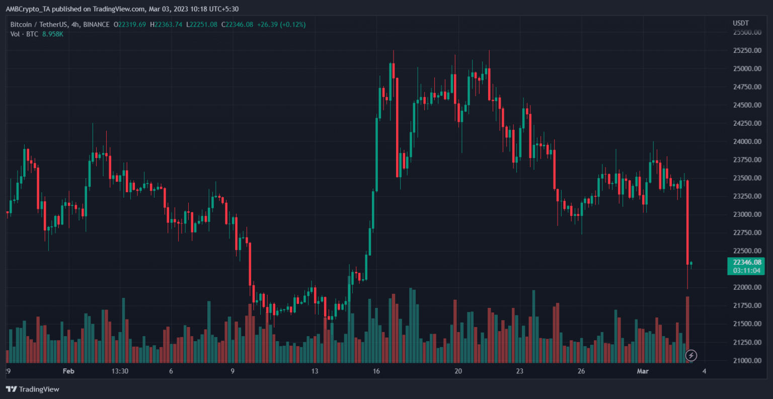 On the time of writing, Bitcoin was buying and selling at $22,346.08 on the worth charts.