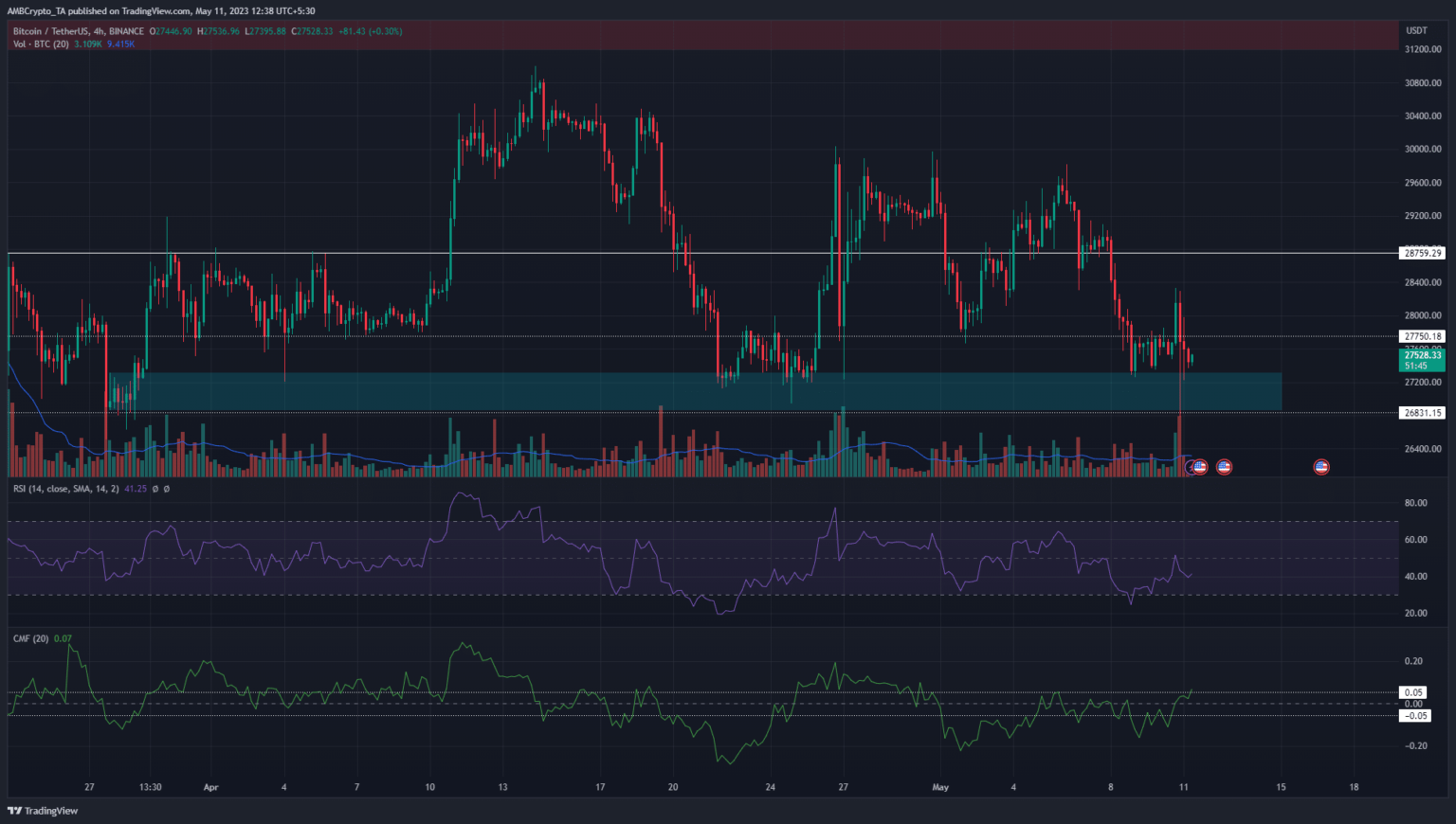 Subsequently, we’ve the RSI and CMF in disagreement, alongside a bullish market construction. A buying and selling session shut under $27,262 on the 4-hour chart will see the construction flipping bearish as soon as extra.