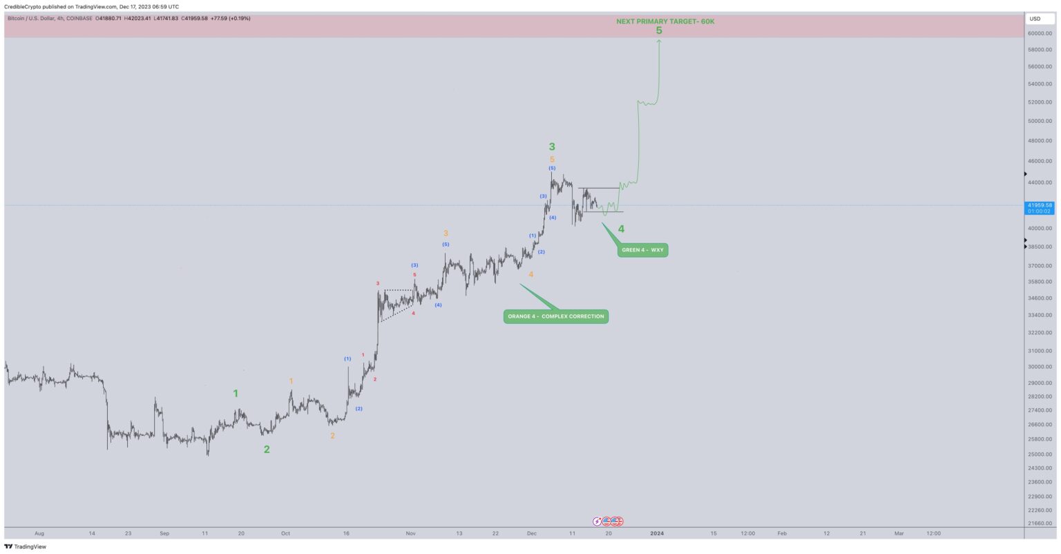 Trying on the dealer’s chart, he appears to foretell that Bitcoin is on the tail finish of its wave 4 correction with the fifth and ultimate wave hitting $60,000.