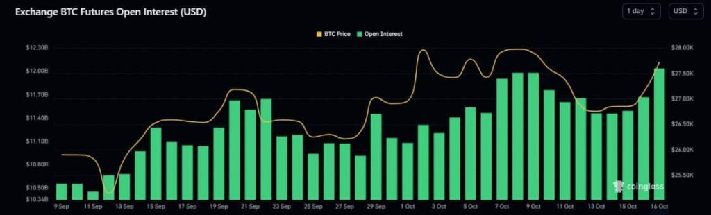 Bitcoin’s worth rip additionally bolstered its demand within the derivatives market. Open Curiosity (OI) in Bitcoin Futures contracts jumped 5% to $11.67 billion within the final 24 hours, as per Coinglass. In truth, a sustained enhance was noticed ever because the SEC vs. Grayscale growth final Friday.
