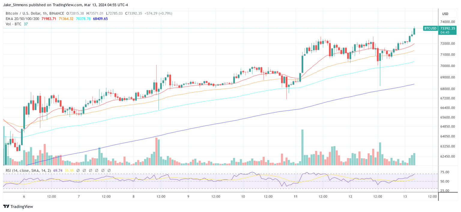 At press time, BTC already surpassed the $73,500 mark and traded at $73,392.