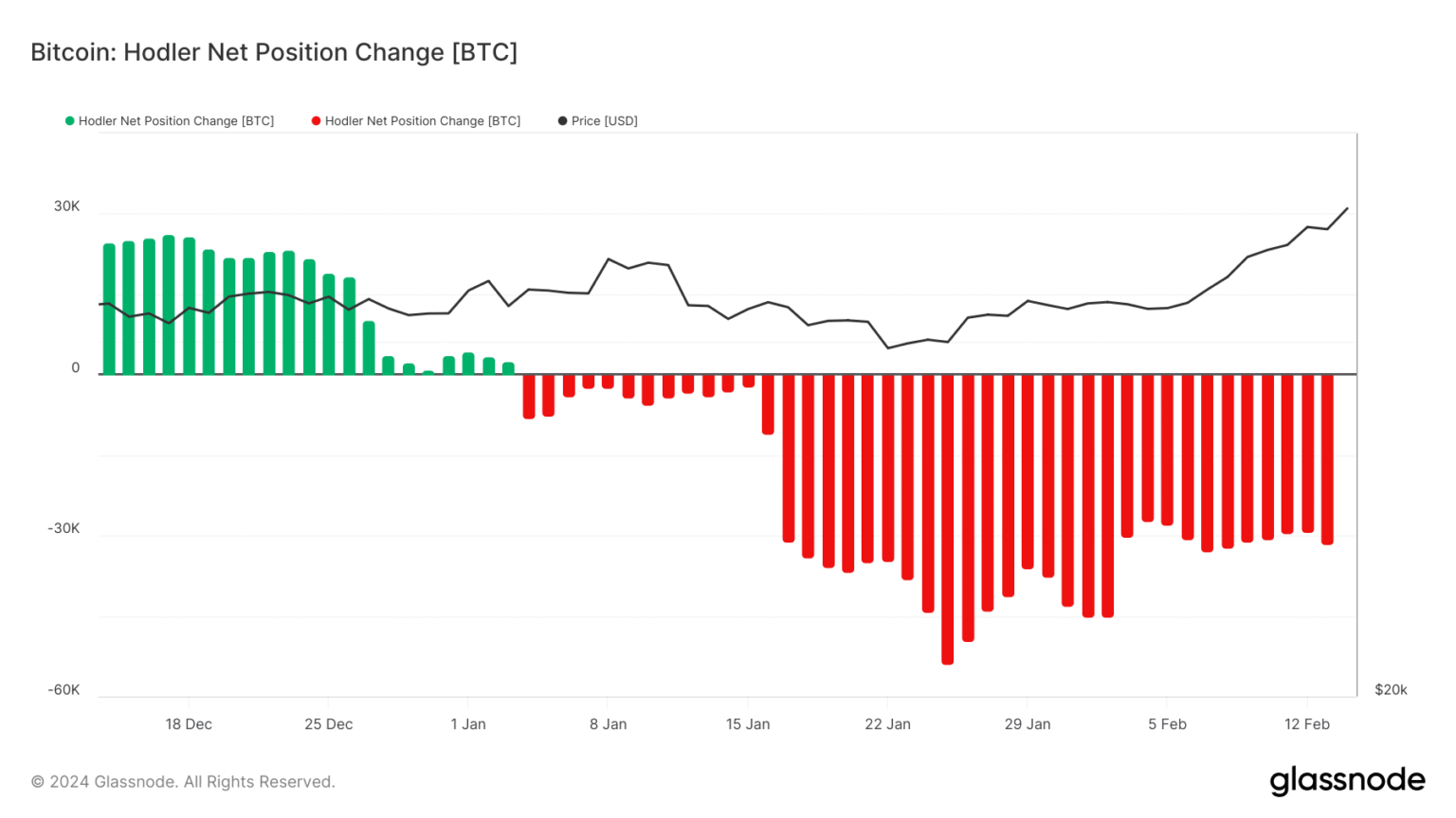 If the Hodler Web Place Change was constructive, it will have meant that traders have been accumulating BTC. However the metric being at -31.531 BTC implies that holders have been cashing out.