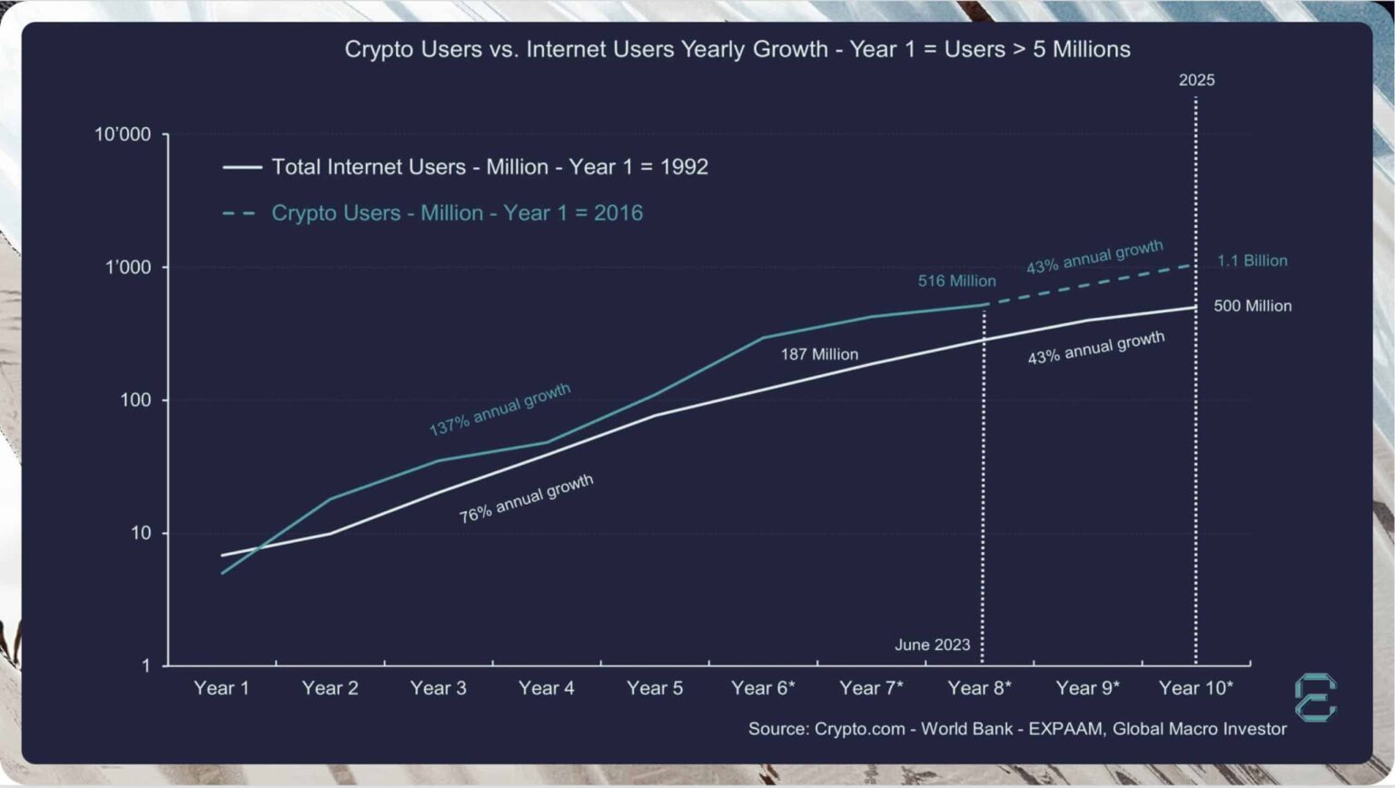 “On days like immediately, simply do not forget that crypto continues to be being adopted at twice the pace of the web and may attain one thing like 1 billion customers by the top of 2025.”