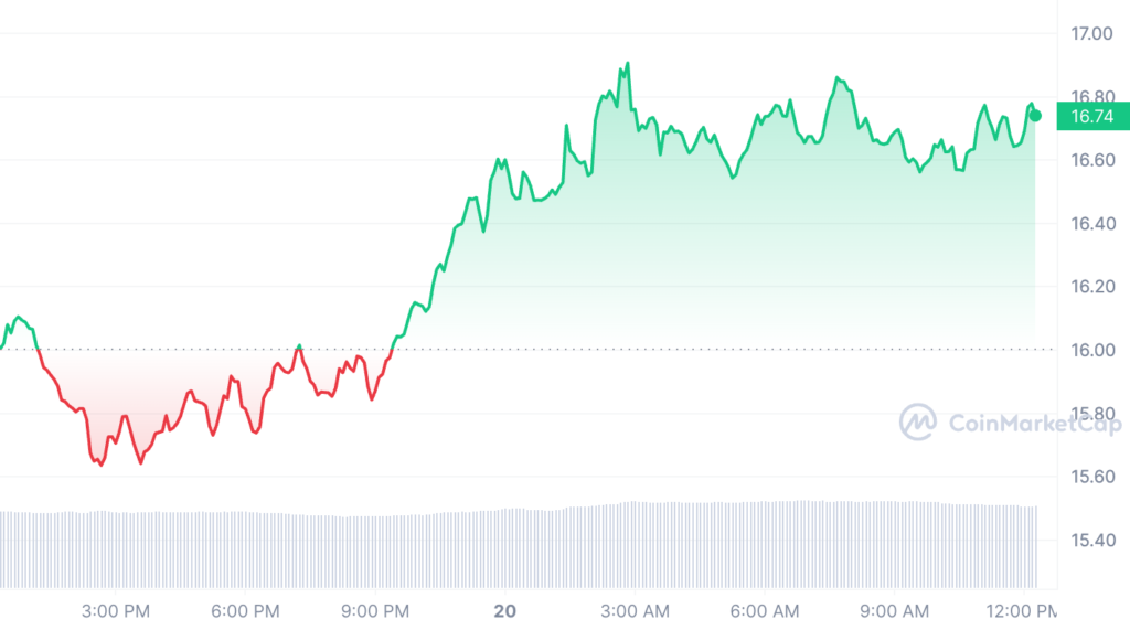 INJ Coin was buying and selling at $16.74 on the time of writing this text.