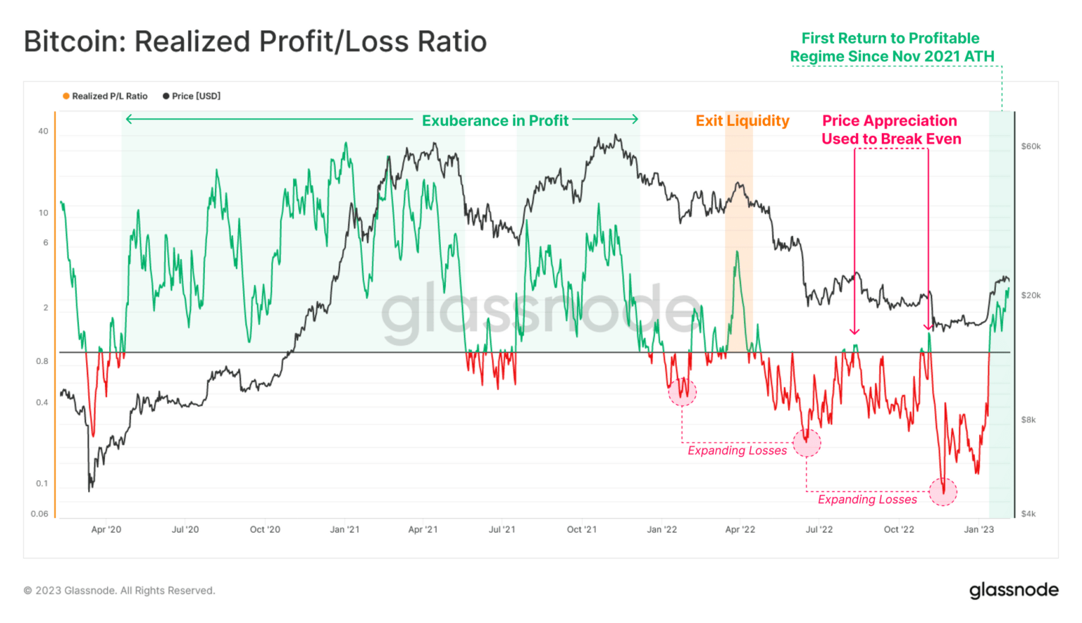 Based on Glassnode, the current surge in BTC’s value induced lots of its holders to log earnings on their investments. By analyzing BTC’s Realized Revenue/Loss ratio, Glassnode examined the steadiness between earnings and losses amongst BTC holders to establish shifts in dominance available in the market.