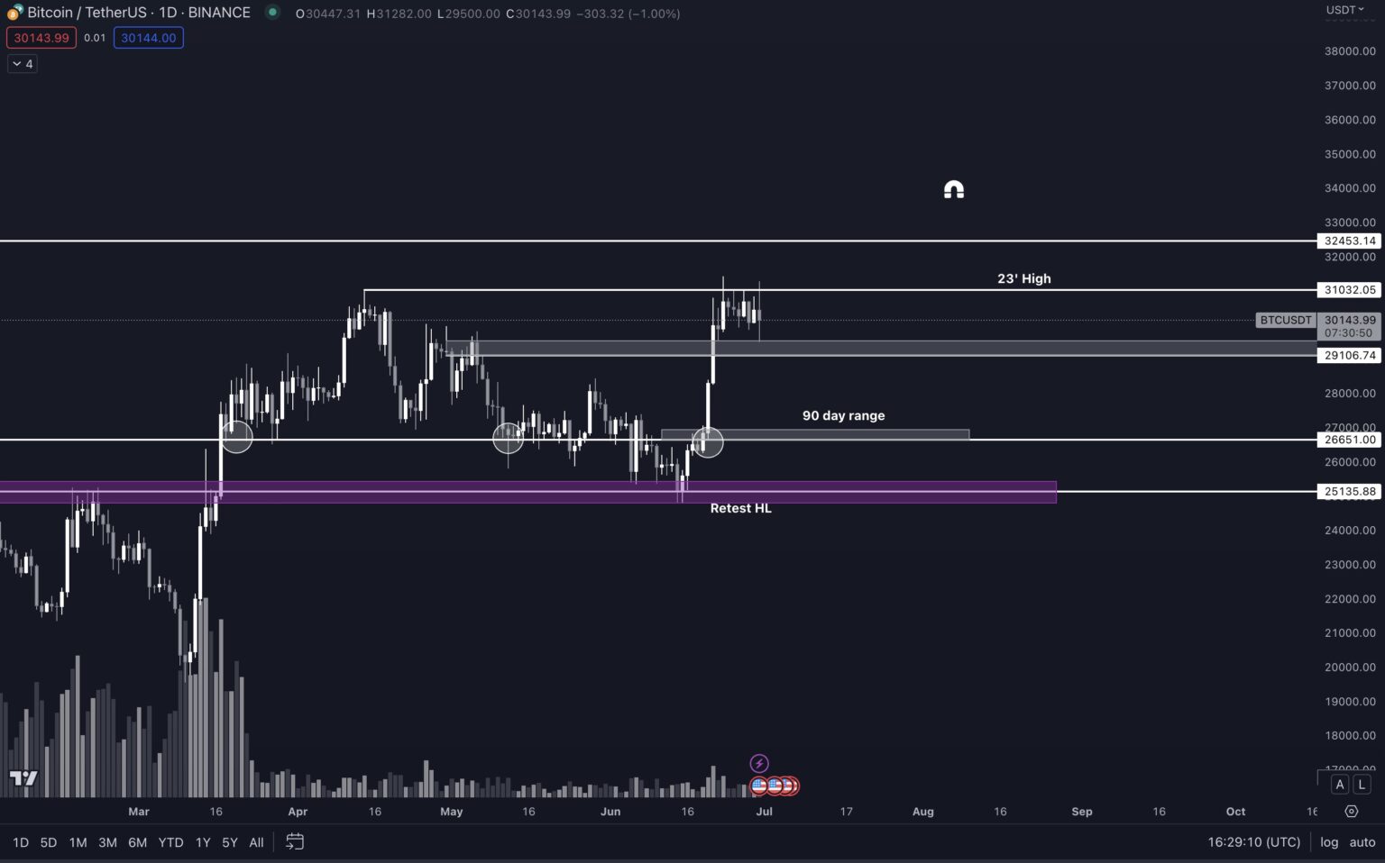 In line with Pentoshi, Bitcoin nonetheless appears to be like bullish after holding assist at round $30,000.