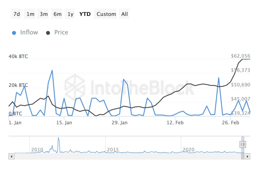 Bitcoin [BTC] has seen a major rise in whale accumulation because the starting of the yr, IntoTheBlock famous in a latest put up on X (previously Twitter).