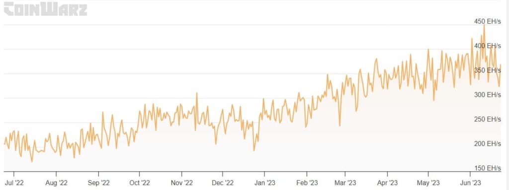 Really, BTC’s hashrate was already on the rise for years. Coinwarz’ chart revealed that its hashrate graph has gone up considerably over the past 12 months. At press time, Bitcoin’s hashrate stood at 354.43 EH/s.