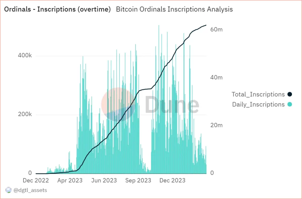 Moreover, information from Dune Analytics confirmed that, thus far, Ordinals has contributed over $434 million in charges.