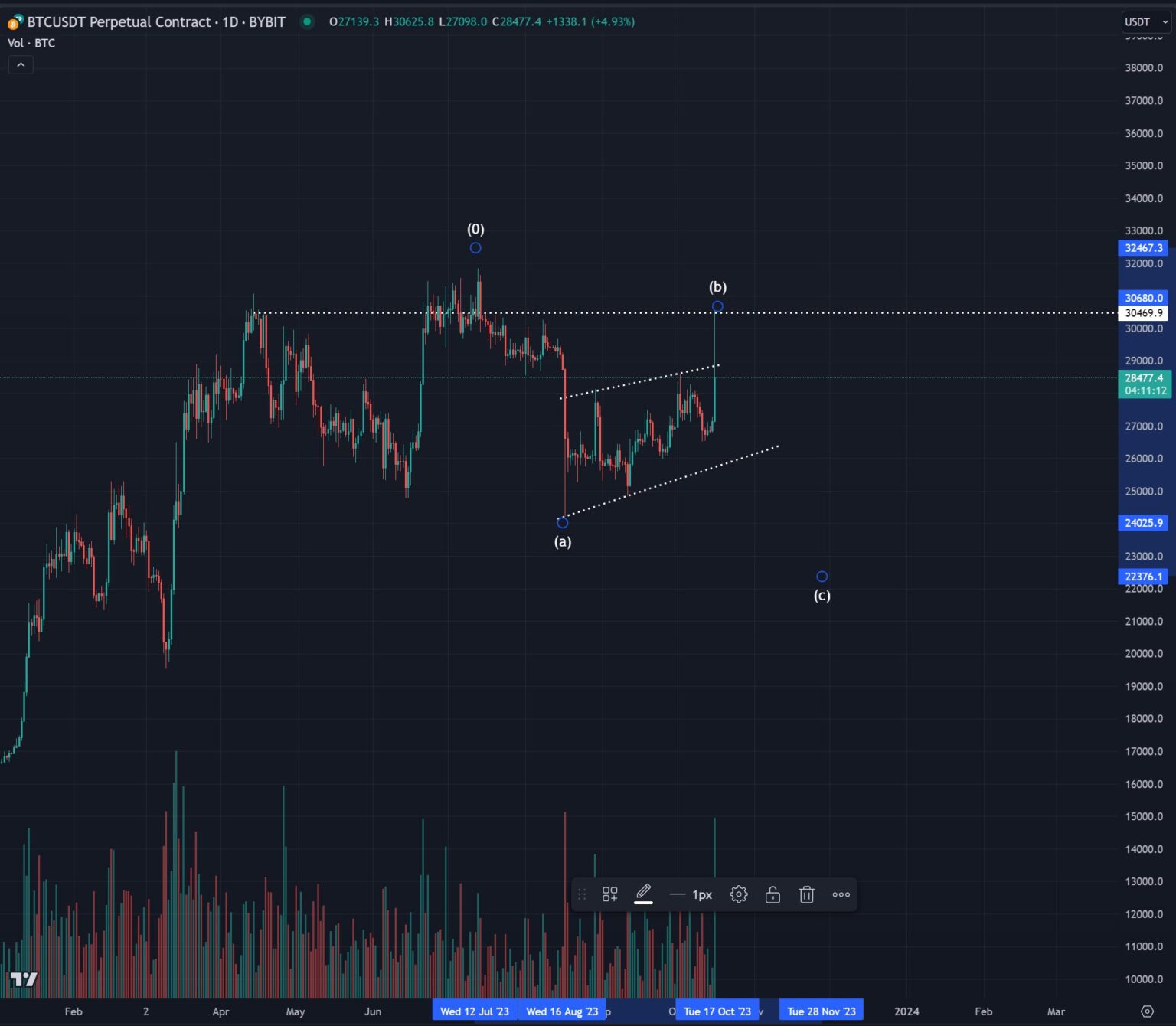 I’m nonetheless acutely conscious that this transfer up could be a B wave, not sufficient conviction to quick however pleased to be sidelined once more for just a little bit and see how this unfolds.”