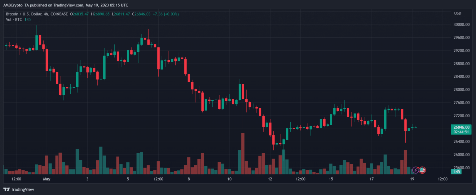 BTC moved increased because the buyers shrugged off the potential turbulence from the U.S. debt ceiling negotiations and its ripple results on crypto. In addition to, President Joe Biden’s assertion in regards to the U.S. not defaulting on its debt, additionally boosted morale.