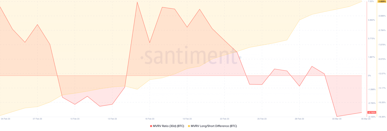 Effectively, the MVRV ratio for the king coin was detrimental, on the time of writing. This implied that almost all of BTC holders would find yourself taking a loss in the event that they offered their coin on the present worth.