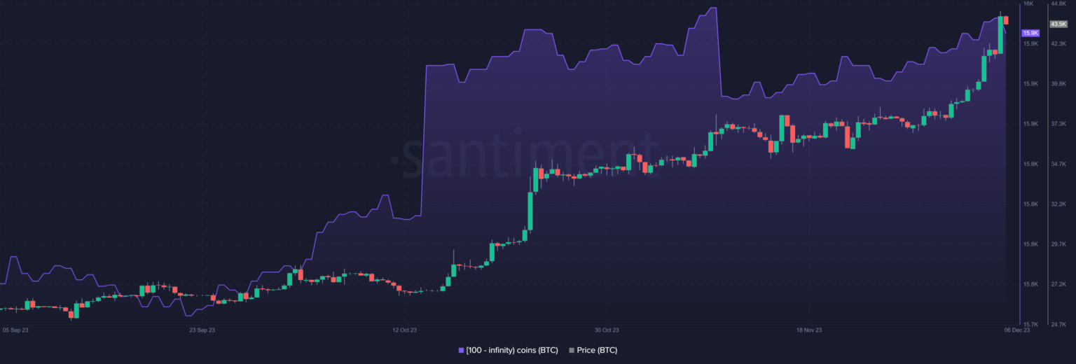 - Round 48 new whale wallets returned as Bitcoin climbed over $43,000.