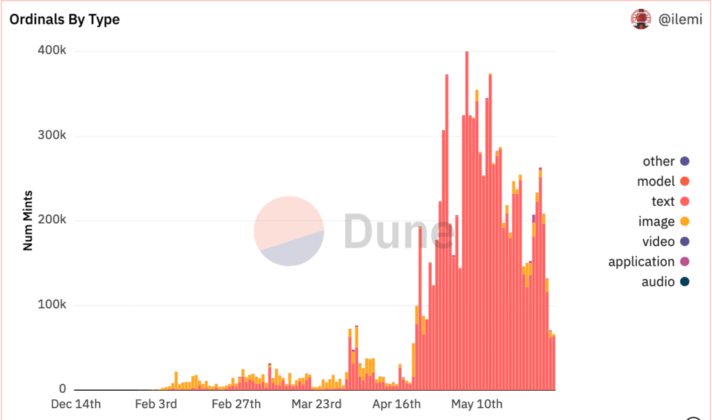 - Bitcoin noticed a surge in exercise introduced on by Inscriptions’ and Ordinals’ recognition.