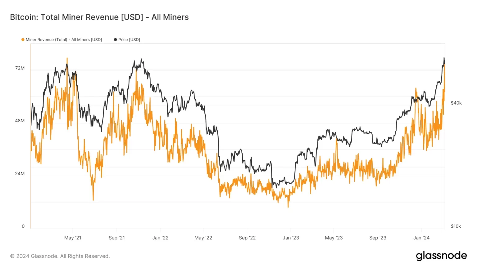 - Bitcoin miner income revisits earlier ATHs.