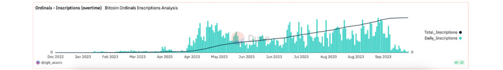 From September 15, 2023 to October 8, 2023, the variety of day by day Ordinal inscriptions has dropped significantly.