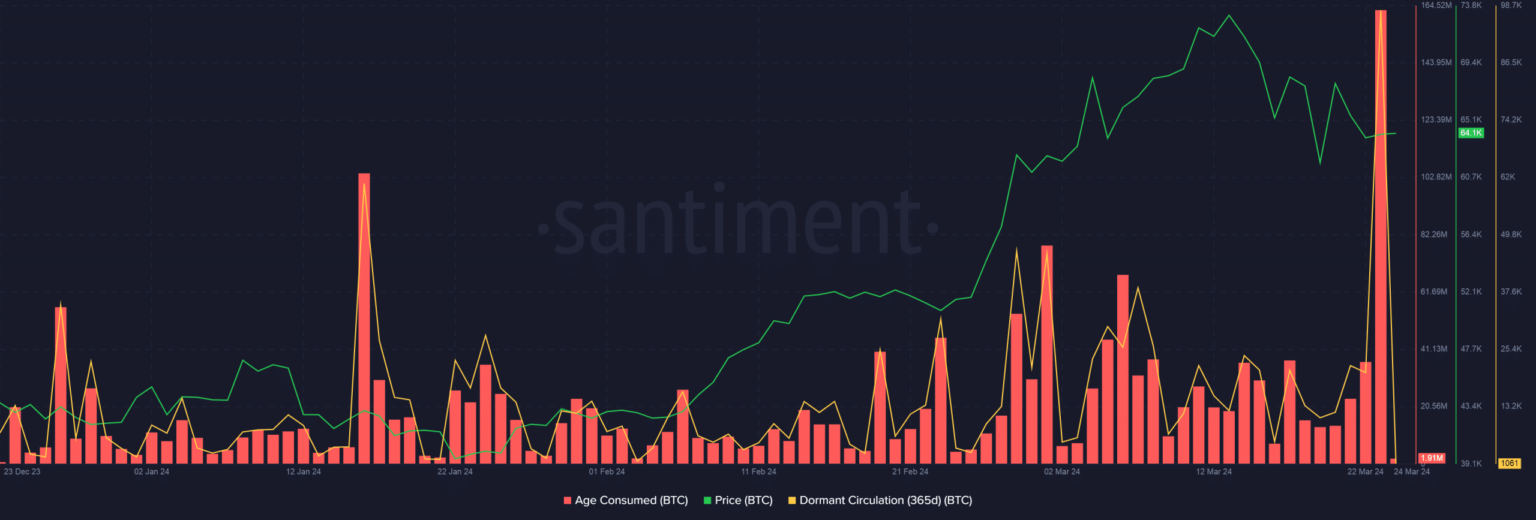 Nonetheless, days forward may witness a major bout of volatility. In accordance with AMBCrypto’s evaluation of Santiment’s knowledge, many beforehand inactive BTCs began transferring between addresses on the twenty third of March.