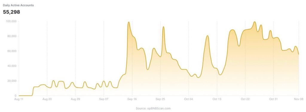 - Whole Transactions: Over 13.6 million transactions have been executed on opBNB for the reason that mainnet launch.