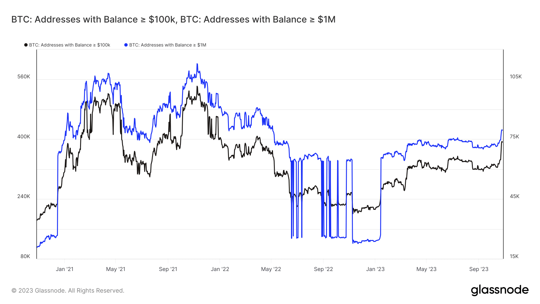Take for instance the quantity held by the most important BTC addresses. Addressees holding at the very least 100,000 BTC and people holding over 1 million BTC have been aggressively accumulating Bitcoin within the final two weeks.