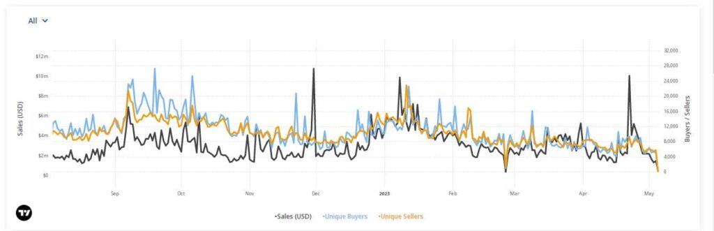 As evident from CryptoSlam knowledge, buying and selling exercise has picked up during the last week, mirrored by almost 29% rise within the variety of consumers and sellers.