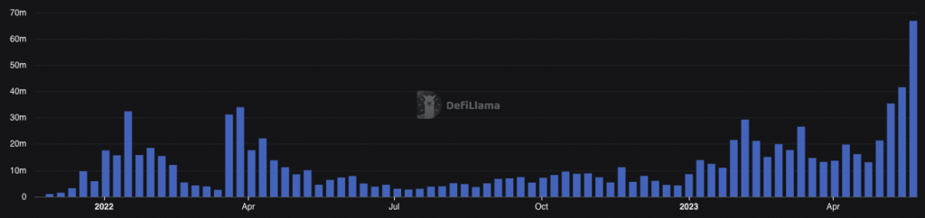 In response to DefiLlama, the hovering exercise ensured that the amount reached $66.88 million inside the aforementioned time-frame. Over $7.94 million got here within the final 24 hours alone.