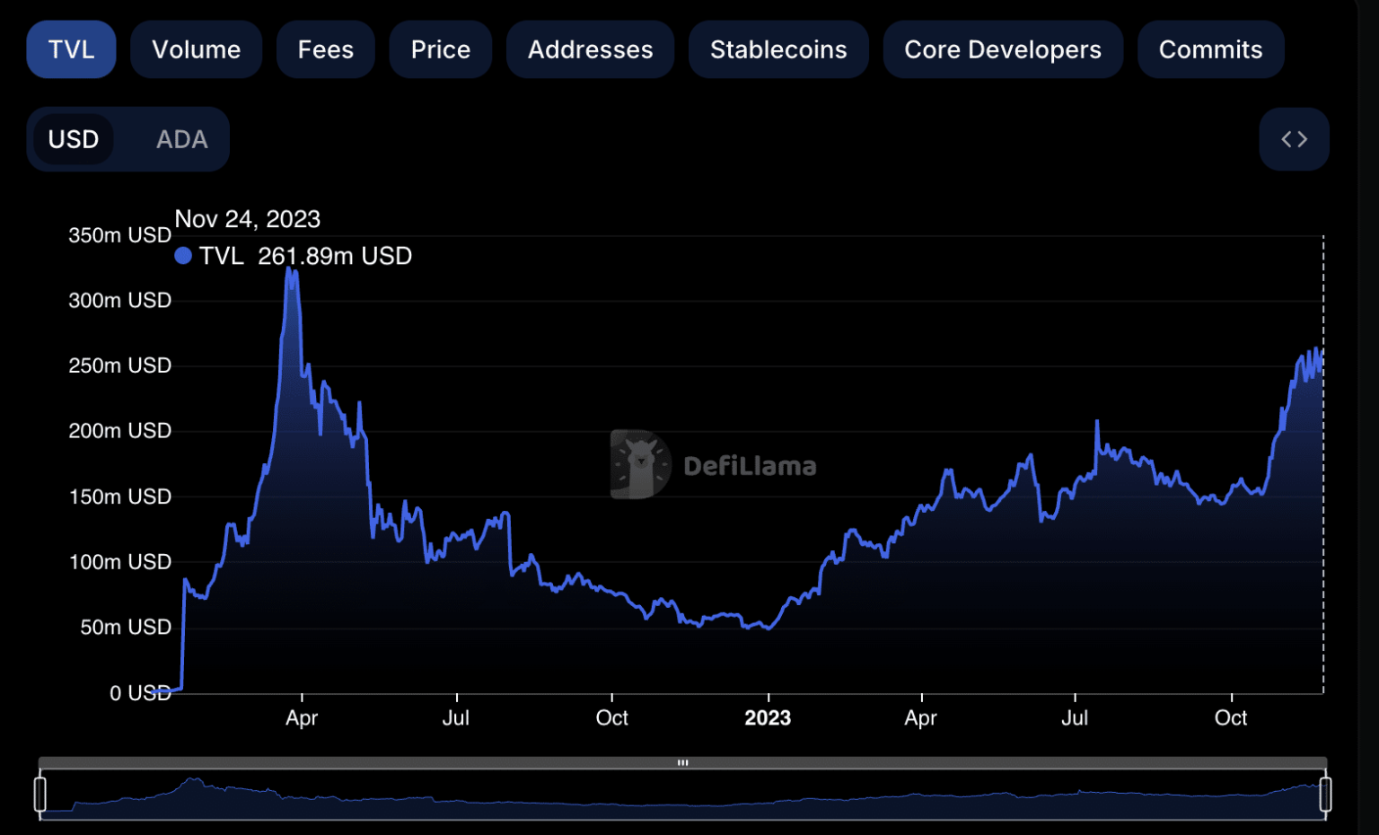 Cardano TVL November 2023