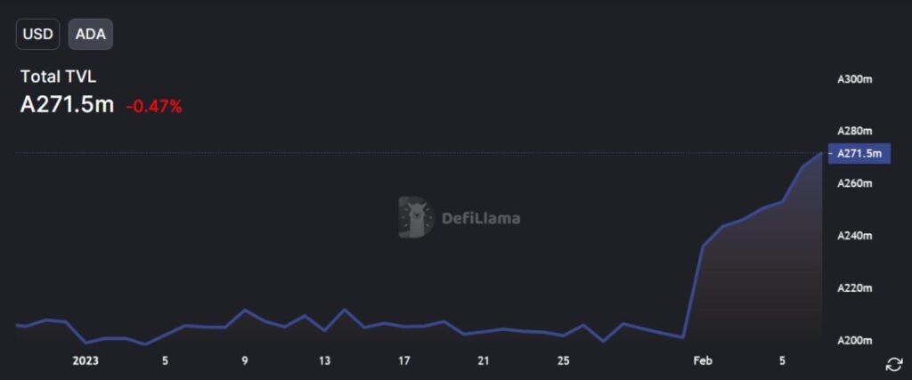 In line with knowledge from DefiLlama, the whole worth locked on the Cardano community began 2023 at round $49 million, and has since surged to now be near the $104 million mark. The rise will be partly attributed to Cardano’s value appreciation, because the cryptocurrency moved from round $0.25 at first of the yr to roughly $0.39 on the time of writing.