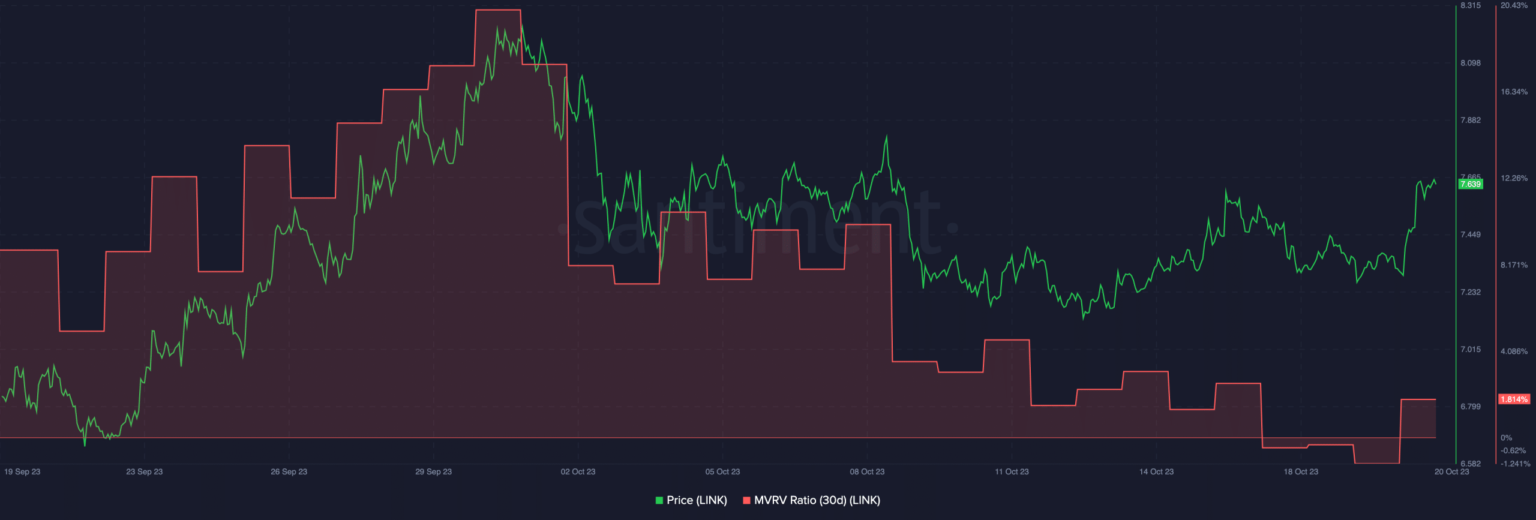 Over the previous 24 hours, LINK’s value elevated by greater than 18%, making it the highest gainer among the many high 15 tokens. As a result of value rise, the MVRV Ratio for LINK surged, indicating that many holders had turned worthwhile.