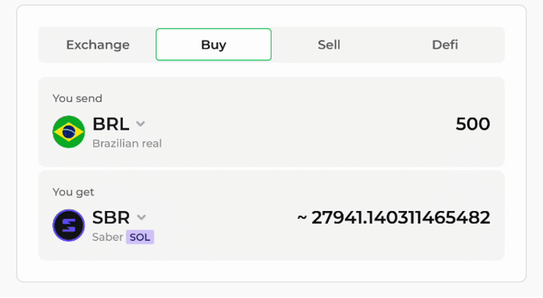 Step 1: Open the Changelly app or web site, head to the “Purchase” tab, and enter the quantity in R$ you wish to spend. Choose the cryptocurrency you want to buy.