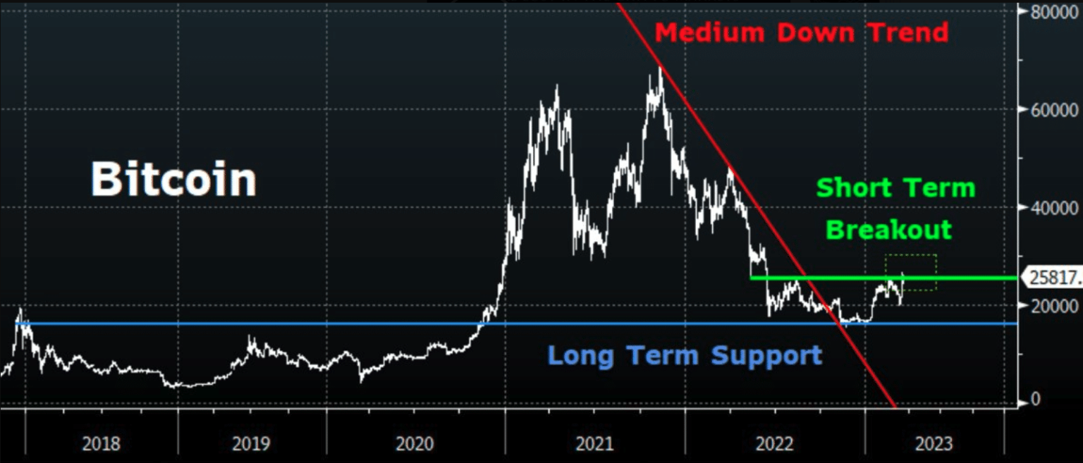 Nicely, a digital belongings dealer by the title of Markus Thielen on Twitter opined that the BTC won’t stall its motion at $26,000. Thielen primarily based his judgment on his technical evaluation. There, he confirmed that BTC has long-term assist.