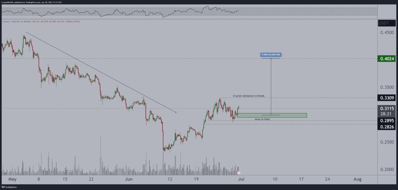 Analyst Michaël van de Poppe tells his 659,600 Twitter followers that Fantom appears bullish so long as it’s buying and selling above $0.30.