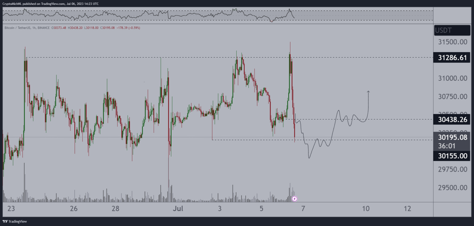 Van de Poppe additionally says BTC’s dip, which noticed the highest crypto by market cap fall from a 24-hour excessive of $31,480 to a 24-hour low of $30,070, a 4.5% lower, is one other one in all BTC’s “low volatility actions.”