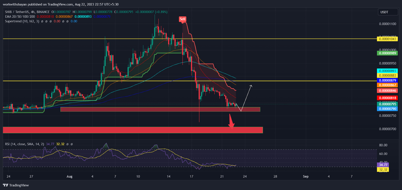 The bulls have efficiently maintained Shiba Inu above the essential $0.0000078 assist degree in current days. Furthermore, they’re trying to set off a major rebound from that degree.