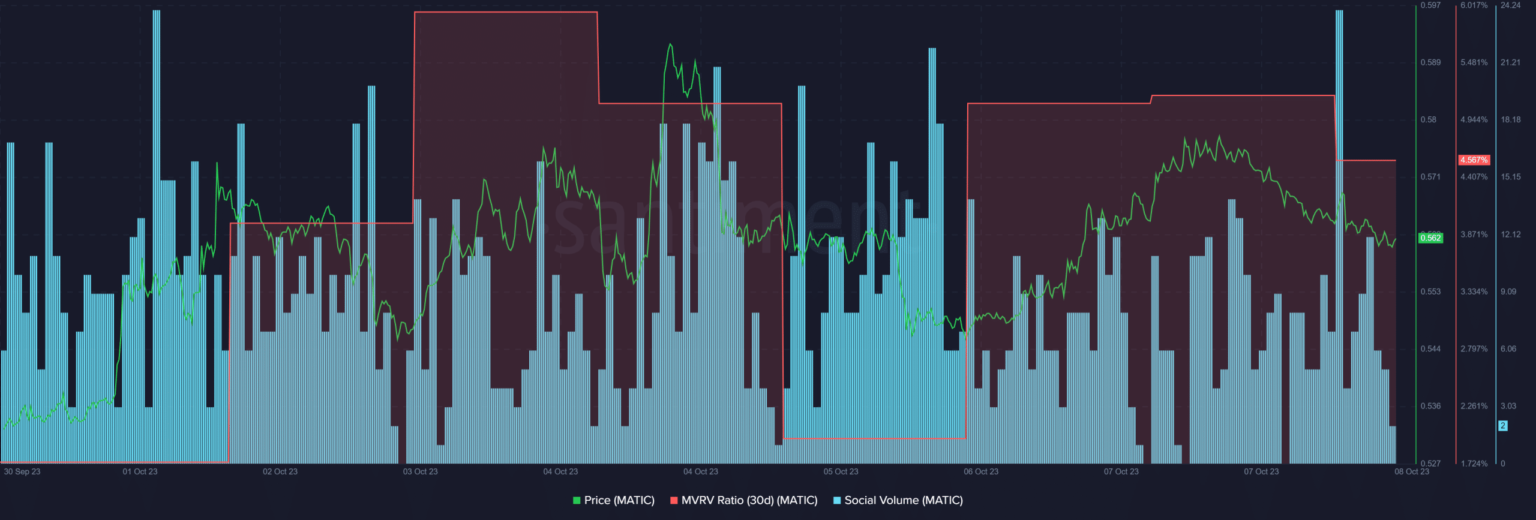 A have a look at the token’s metrics revealed what went fallacious over the previous few days. It was shocking to notice that regardless of the current value drop, the token’s MVRV ratio was nonetheless comparatively up final week. Its social quantity additionally remained excessive, reflecting the token’s reputation.