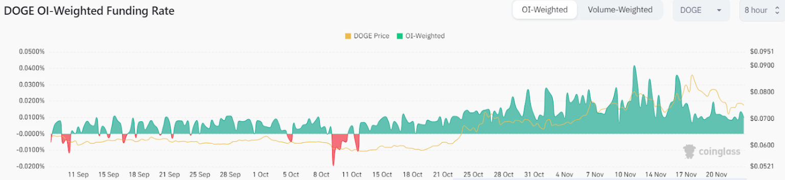 Even with a big quantity of liquidations, merchants seem stronger. The optimistic funding charge means that, at the moment, there are extra lengthy contracts than quick contracts for Dogecoin. This optimistic funding charge alerts {that a} bigger variety of merchants are choosing lengthy positions, anticipating a rise within the value within the coming hours. Subsequently, if the worth of Dogecoin follows the expectations of its merchants, a downturn is perhaps prevented. Nevertheless, if it doesn’t, additional losses could possibly be there.