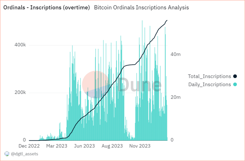 Moreover, with the approaching launch of the Trump Digital Playing cards assortment on Bitcoin Ordinals, there’s a chance of a spike in each day inscriptions, a minimum of throughout that interval.
